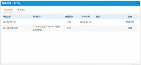 当学员一段时间不能来学校上课时,老师可以对该学员进行一键停课,该学员的课消将会停止计算;