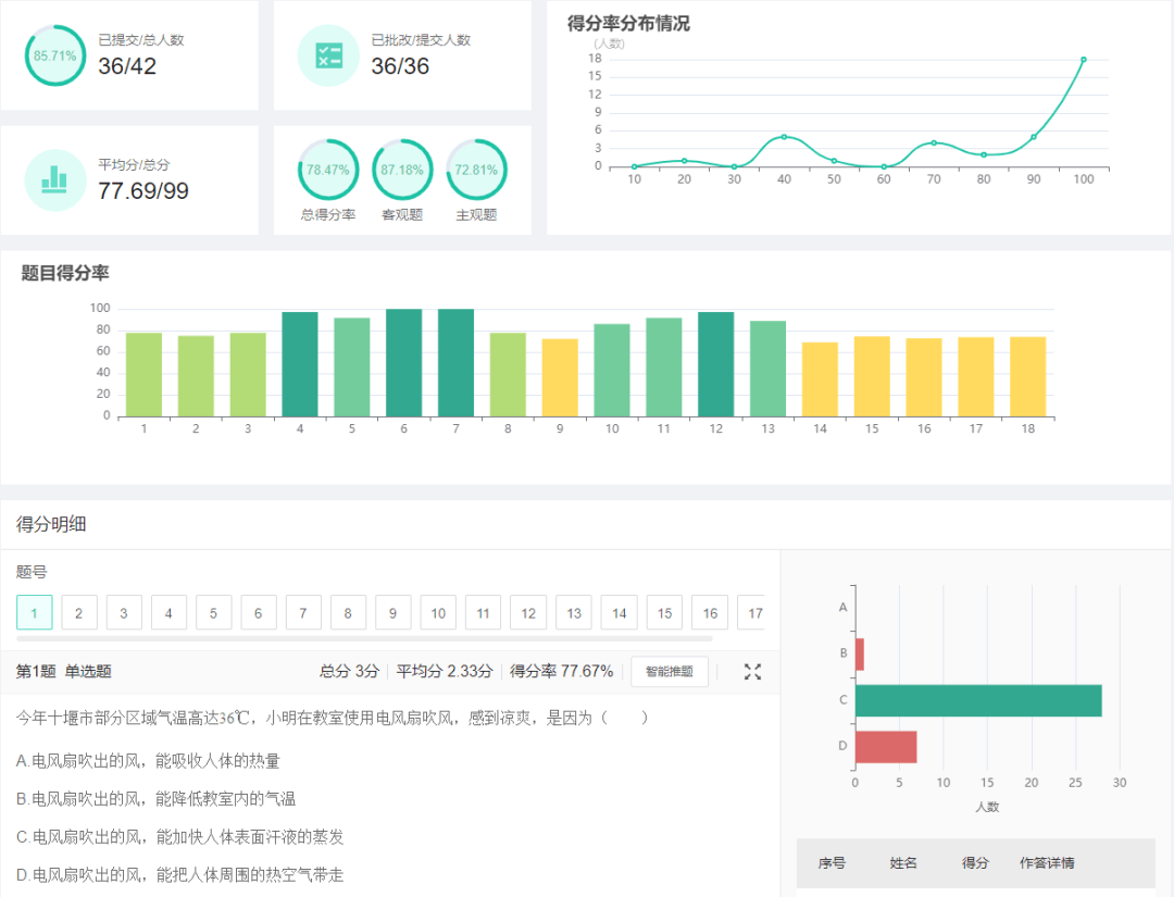 卓越系统在课前能将学情分析数据化,帮助教师精准教研,发现与突破学生难点。