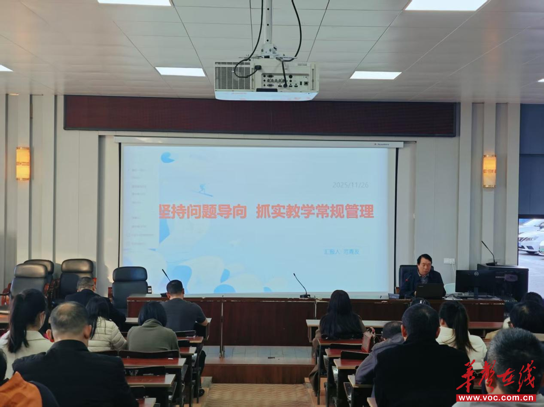 专题讲座传经验,精准导航助冲刺。11 月 26 日,备考专题讲座如期举行。刘斌老师聚焦提分关键,分享了针对性教学技巧与高效备考策略;该校党委副书记、副校长范青友围绕教学常规管理、备考效率提升等核心内容展开阐述,为全体教师明晰了冲刺阶段的教学重点与实施路径。