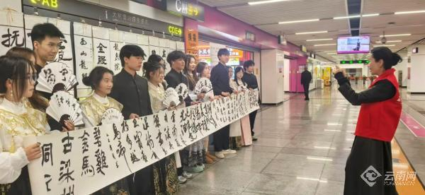 12月14日15时,由云南省文化馆、云南师范大学艺术学院、昆明地铁资源经营管理有限公司联合主办的“遇见云南点亮昆明”民族文化艺术展示活动正式启幕。这场以校政合作创新模式搭建的大学生社会实践活动,覆盖北部汽车站、塘子巷站、东风广场站等43个地铁站点,将民族文化的活力注入城市公共空间,让云南民族文化绽放光彩。